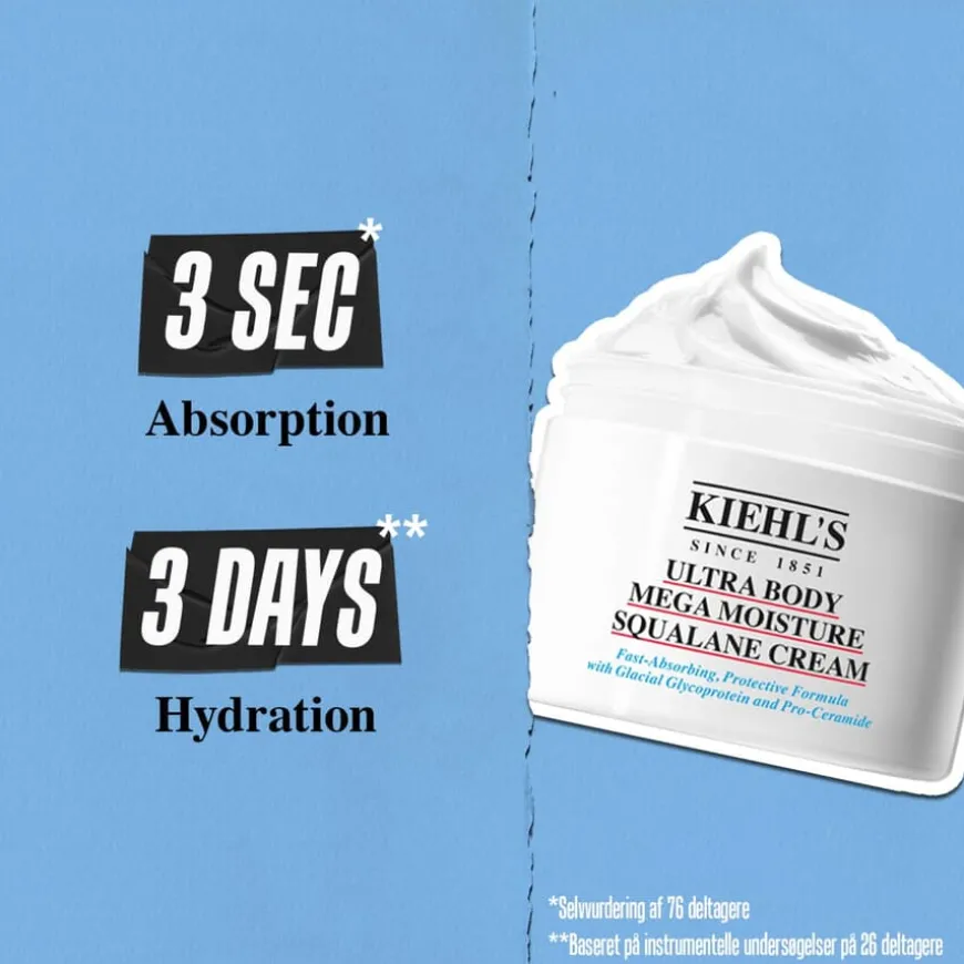 Ultra Body Mega Moisture Squalane Cream er en fuktighetsgivende bodylotion som er spesielt utviklet for sensitiv og tørr hud. Den inneholder nøkkelingrediensene Squalane, Glyserin og Ceramider, som gir intensiv pleie og styrker hudens barrierefunksjon. Den silkemyke kremen absorberes raskt – på bare 3 sekunder – uten å etterlate huden fet, og gir langvarig fuktighet i opptil 3 dager. Kremen er ideell for deg som trenger rask, effektiv og varig pleie i en travel hverdag. Passer alle hudtyper, men spesielt formulert for sensitiv hud.