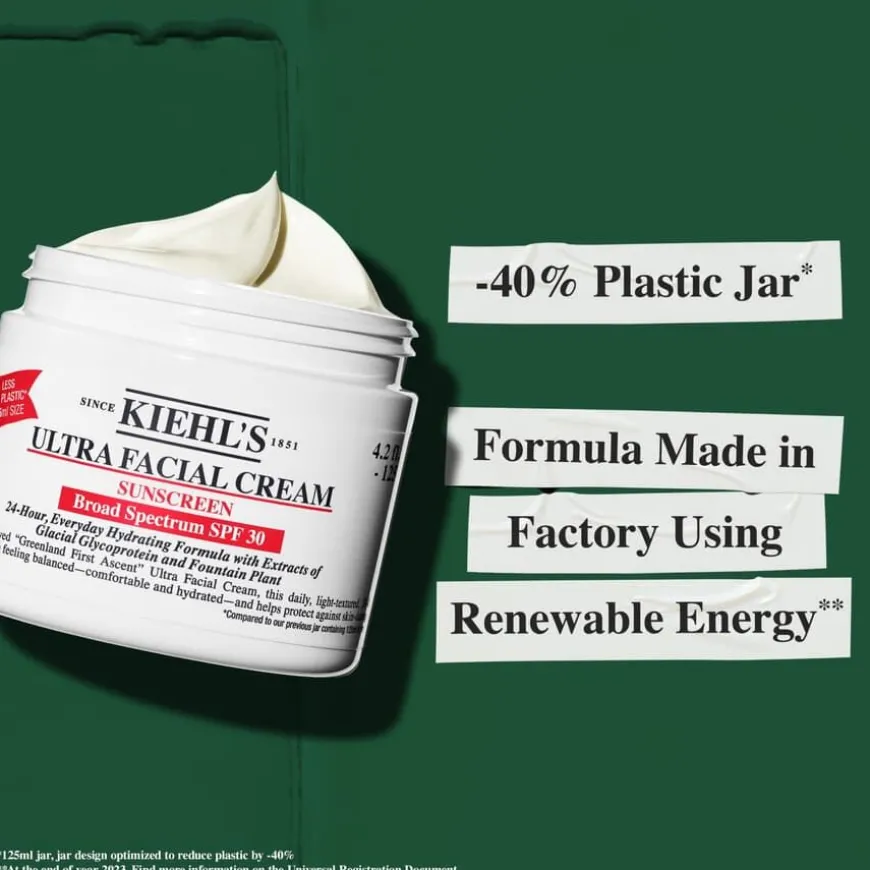 Ultra Facial Cream SPF30 er en beskyttende og fuktighetsgivende dagkrem som kombinerer Kiehl’s bestselgende fuktformel med bredspektret solbeskyttelse. Den lette teksturen gir opptil 24 timers fukt og passer alle hudtyper, inkludert sensitiv hud. Kremen er beriket med squalane fra oliven, antarcticine og Ophiopogon Japonicus Root-ekstrakt som styrker hudbarrieren og gir en myk, smidig hud. Velegnet til bruk året rundt – også i kaldt og røft klima. Med bærekraftig emballasje laget av 100 % resirkulerbart materiale.