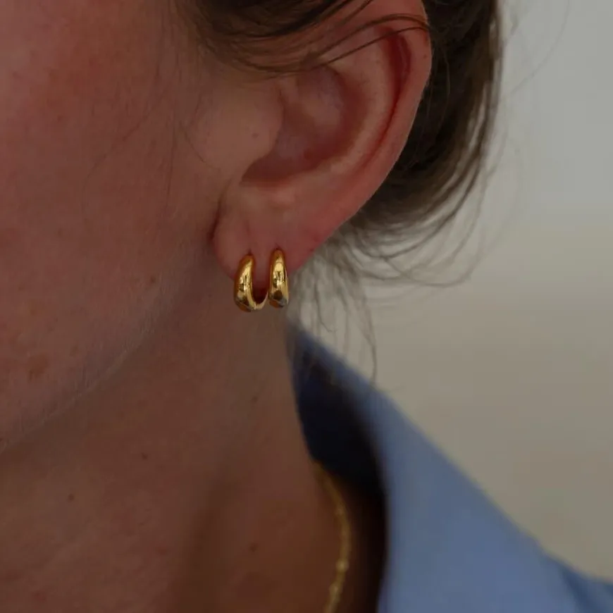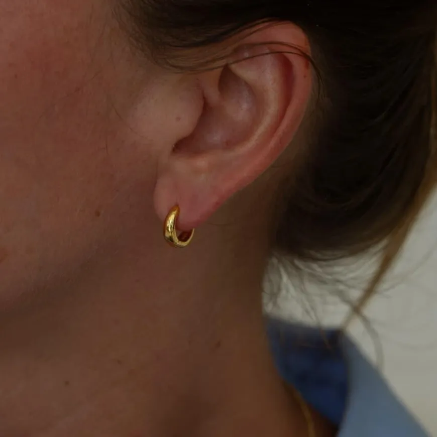 Ultra Mini Huggies fra Muli Collection er en subtil og elegant tillegg til smykkesamlingen din. Disse små hoop-øredobbene klemmer øreflippen for et moderne og sofistikert uttrykk. Med en glatt finish og et minimalistisk design er de ideelle for daglig bruk. Laget av 18k gullbelagt messing. Leveres i en Muli Collection-merket oppbevaringspose.