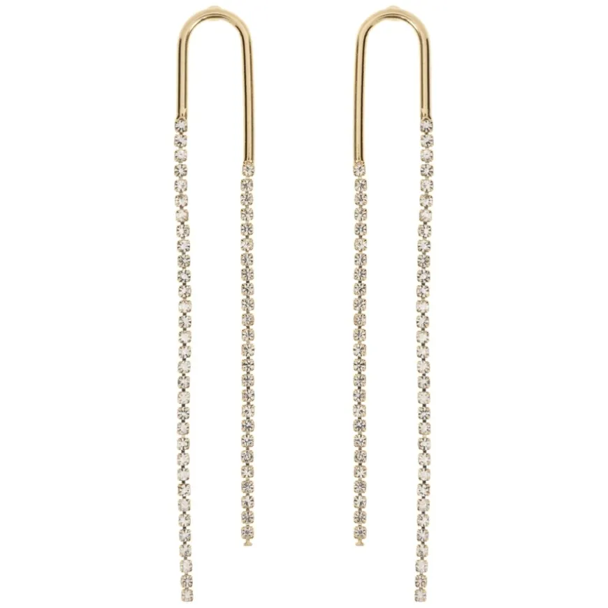 Valentina Crystal Dangling Party Stud Earrings er et par elegante øredobber som gir antrekket ditt et glamorøst løft. Øredobbene har en buet fasong øverst og stilfulle kjeder som henger ned, noe som skaper et sofistikert uttrykk perfekt for festlige anledninger. Laget i 18k gullbelagt messing og designet uten nikkel, kadmium og bly, passer disse øredobbene også for sensitiv hud. Valentina Crystal Dangling Party Stud Earrings er det ideelle valget for deg som ønsker en luksuriøs og iøynefallende look.