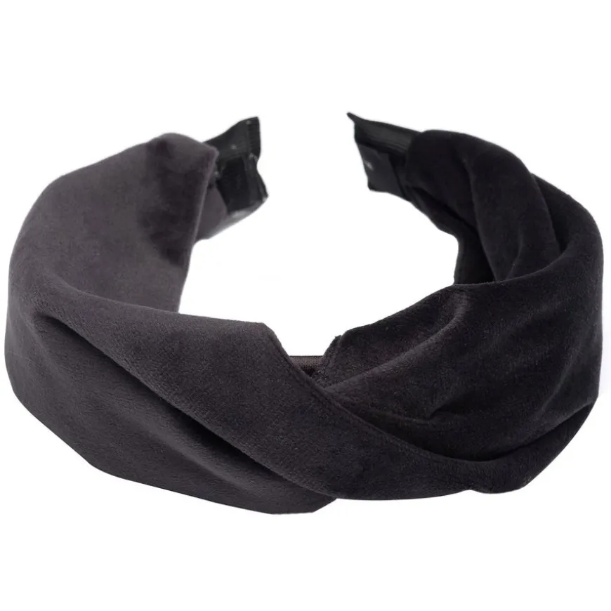 Avstivet hårbøyle i velour. Behagelig å gå med, strammer ikke bak ørene. Bredde ca. 4 cm.