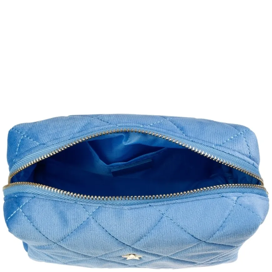 Velvet Square Quilted Make-Up Pouch er en elegant og funksjonell sminkepose laget av myk, vattert fløyel. Med en størrelse på 17 x 13 x 6,5-8 cm cm gir den god plass til å oppbevare sminke og andre nødvendigheter. Posen er utstyrt med detaljer i slitesterk sinklegering, noe som gir et luksuriøst og stilfullt preg. Perfekt for deg som ønsker å holde sminken organisert på en elegant måte, både hjemme og på reise.