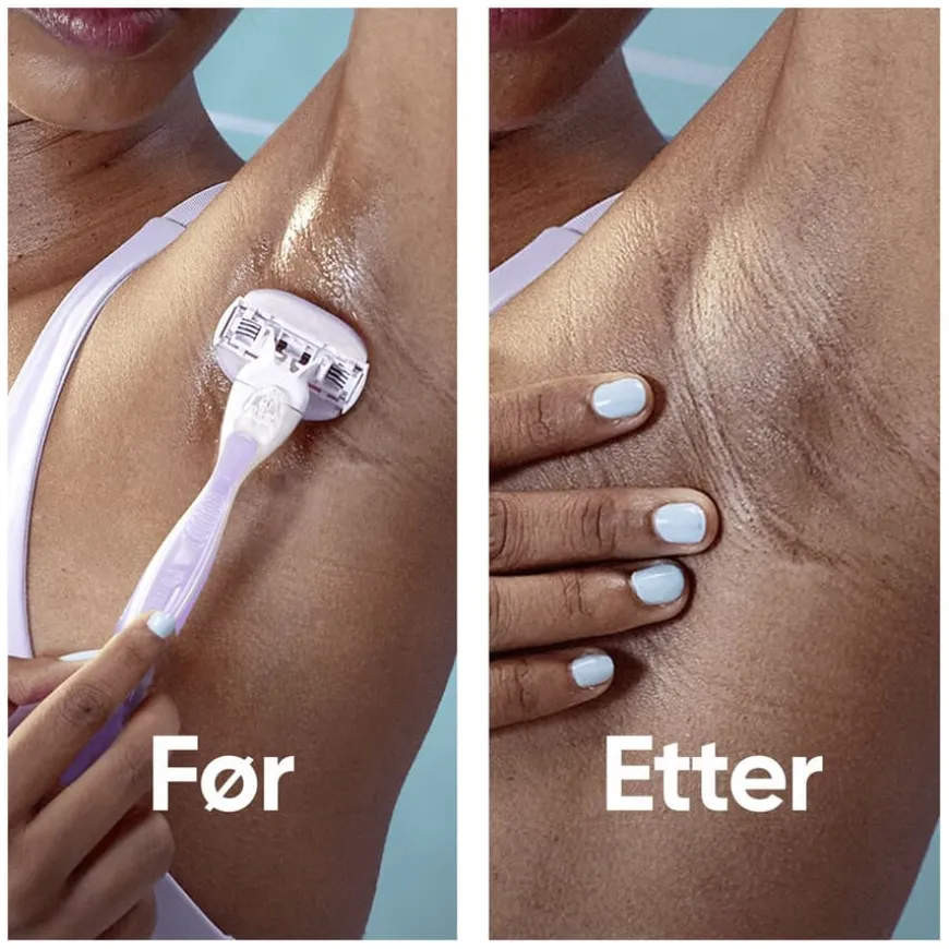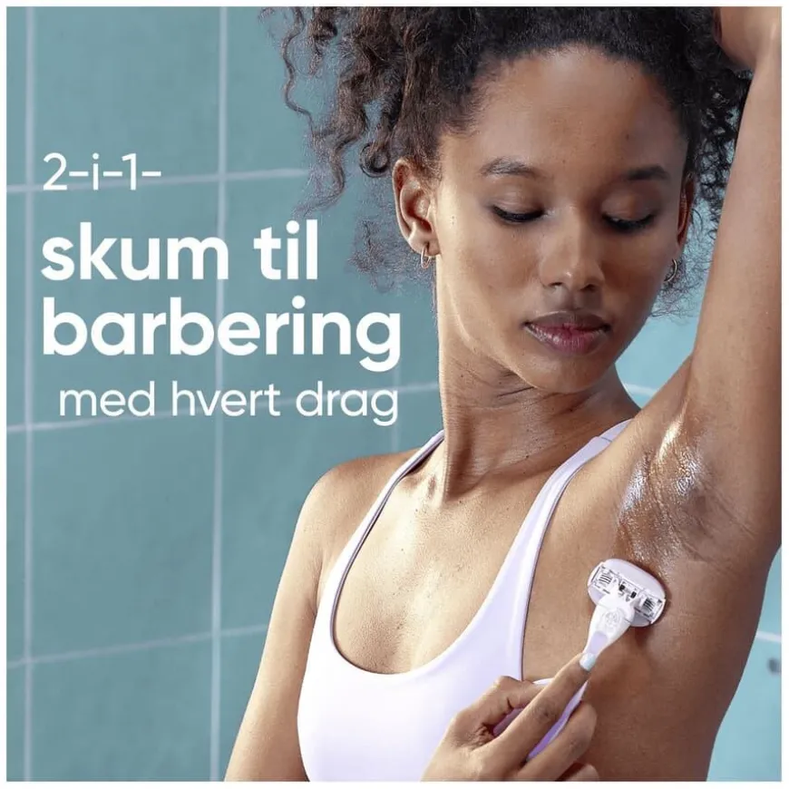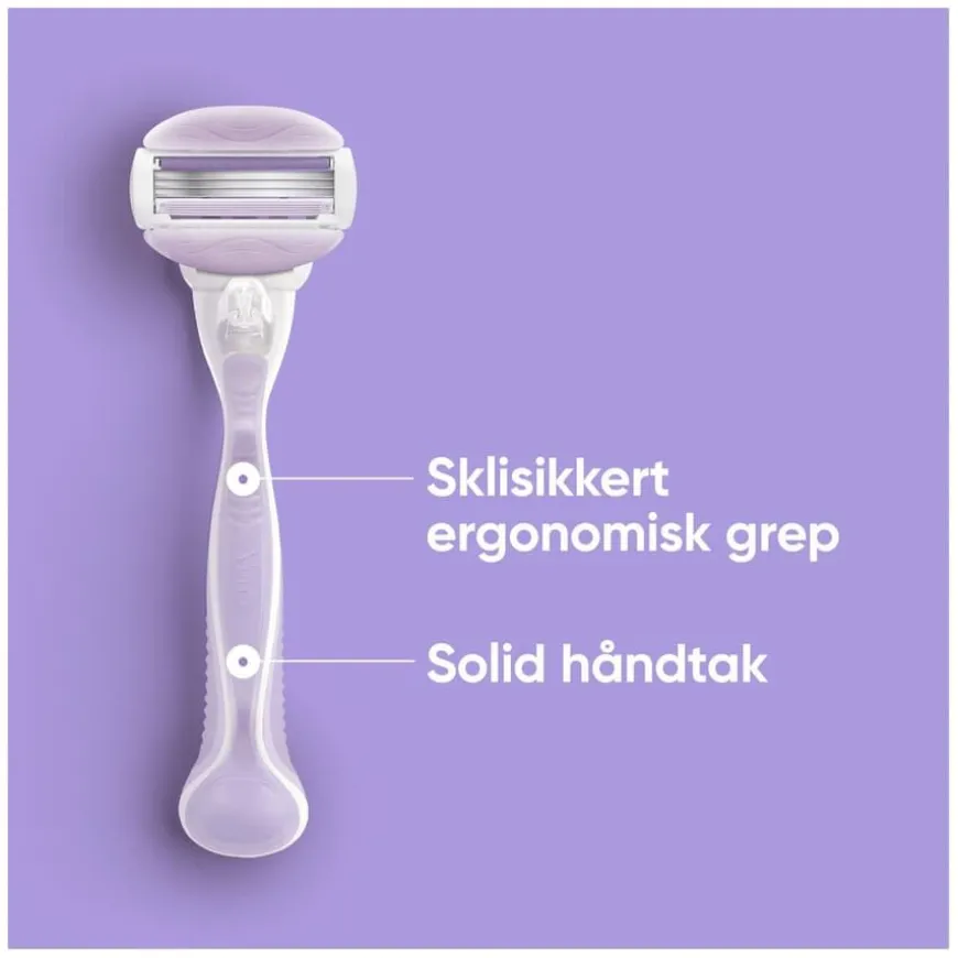 Venus ComfortGlide Breeze Razor er en barberhøvel for kvinner som gir en behagelig og tett barbering med en følelse av velvære. De innebygde gelbarene med fresiaduft skummer og barberer samtidig, og gjør barberingsrutinen enkel og effektiv. Barberhøvelen har 3 blader og en SkinCushion-smørestripe som beskytter huden mot irritasjon og gir opptil 30 dager med glatthet. Det ergonomiske, sklisikre håndtaket sikrer godt grep og kontroll under bruk. Håndtaket er gjenbrukbart og kompatibelt med alle Venus-bladrefiller (unntatt Simply Venus og Venus Pubic Hair & Skin), slik at du enkelt kan bytte til ditt foretrukne blad. Ideell for både nybegynnere og daglig bruk.