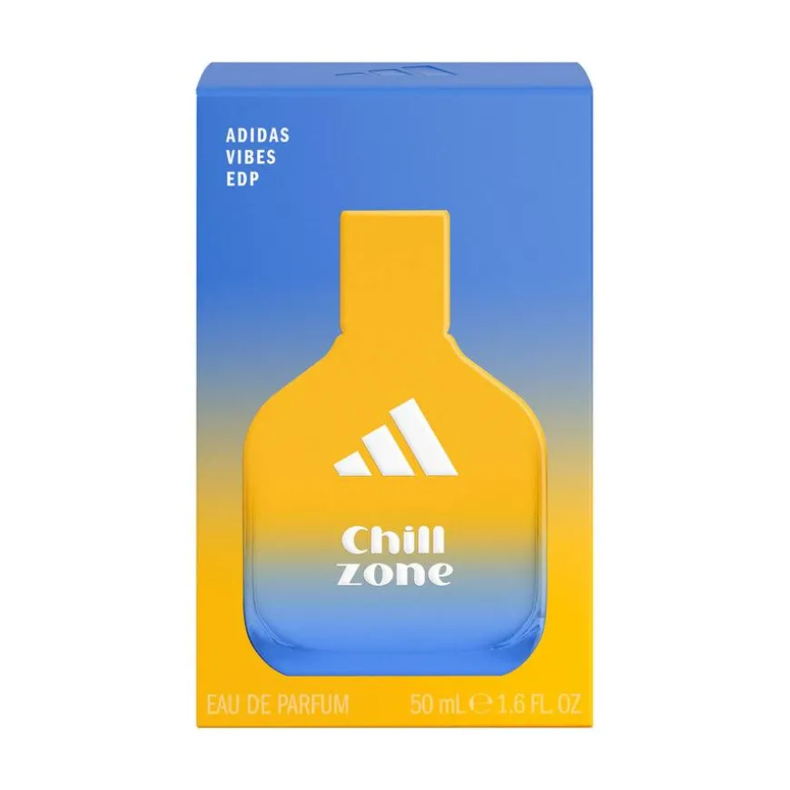 Føl roen og slapp av med denne nye Adidas-duften. Vibes Chill Zone Eau De Parfum er bevist å gi en positiv følelse*. En mild og krydret duft som hjelper deg med å slappe av og øke komfortnivået ditt, med lavendel og hint av vanilje.Den langvarige duften, med olibanum og lavendel-eteriske oljer, har en vegansk formel og er dermatologisk testet. Emballasjen er laget med resirkulerte materialer.