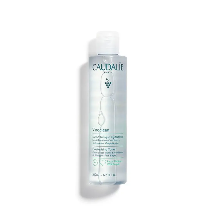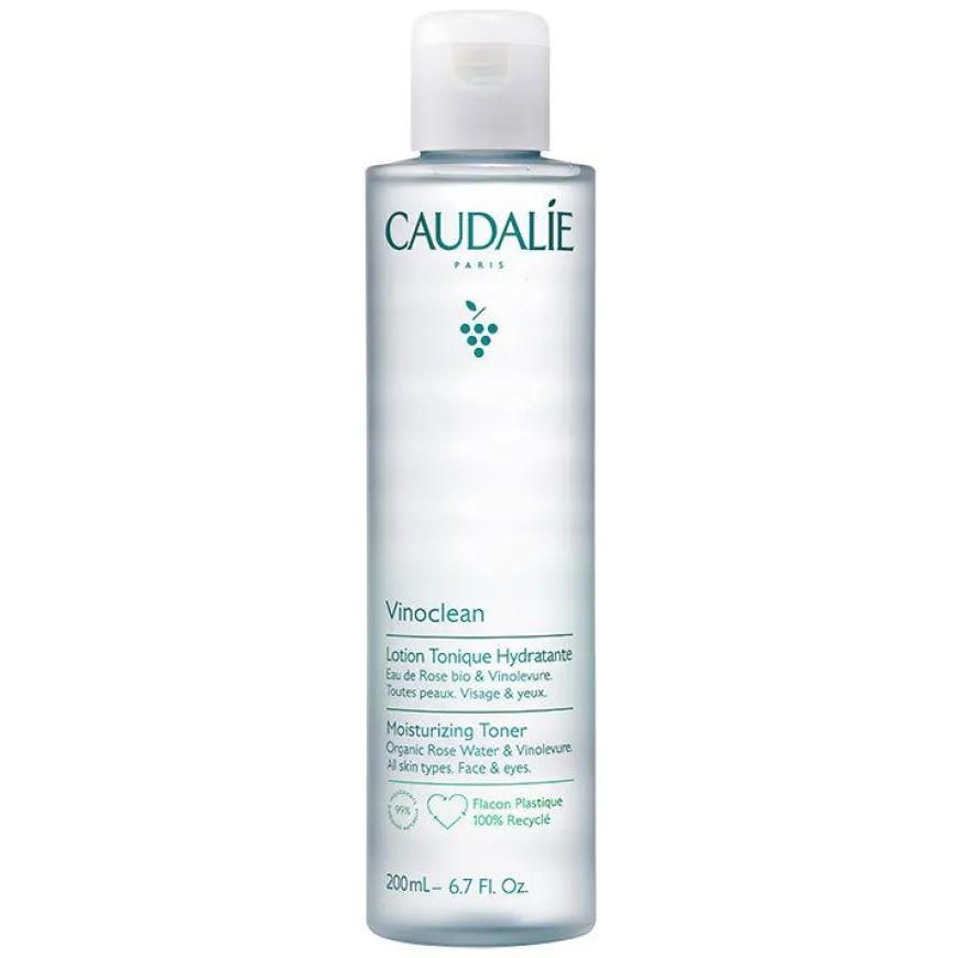 Caudalie Vinoclean Moisturizing Toner er en mild, vegansk og alkoholfri fuktighetstoner som hjelper hudens naturlige PH-balanse. Fjerner rester av smuss og sminke fra ansiktet mens du forbereder huden til neste hudpleietrinn, serum og krem. Tilfører rikelig med fuktighet og etterlater huden frisk, klar og beroligende. Emballasjen / flasken er 100% resirkulerbar.