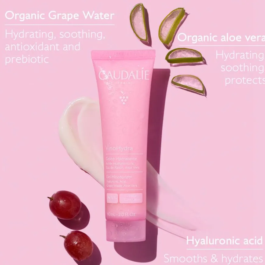 VinoHydra Gel Moisturizer er en fuktighetskrem som gir huden et naturlig fuktighetsboost. Den er formulert uten silikoner, og dens ultrafriske geltekstur smelter inn i huden uten å etterlate en oljete finish, noe som gjør den ideell for kombinasjonshud, selv sensitiv. Huden føles umiddelbart mer smidig, og hudtonen ser friskere ut. Den smeltende teksturen i de fleste gelkremer kommer fra silikoner. Vinosource-Hydra Grape Water Gel Moisturizer er et resultat av en naturlig formuleringsprestasjon og er formulert uten silikoner. Både menn og kvinner vil elske denne gelkremteksturen uten oljete finish. Du vil nok oppdage at han stjeler gelkremen din på badet! Produktet er egnet for kombinasjonshud.