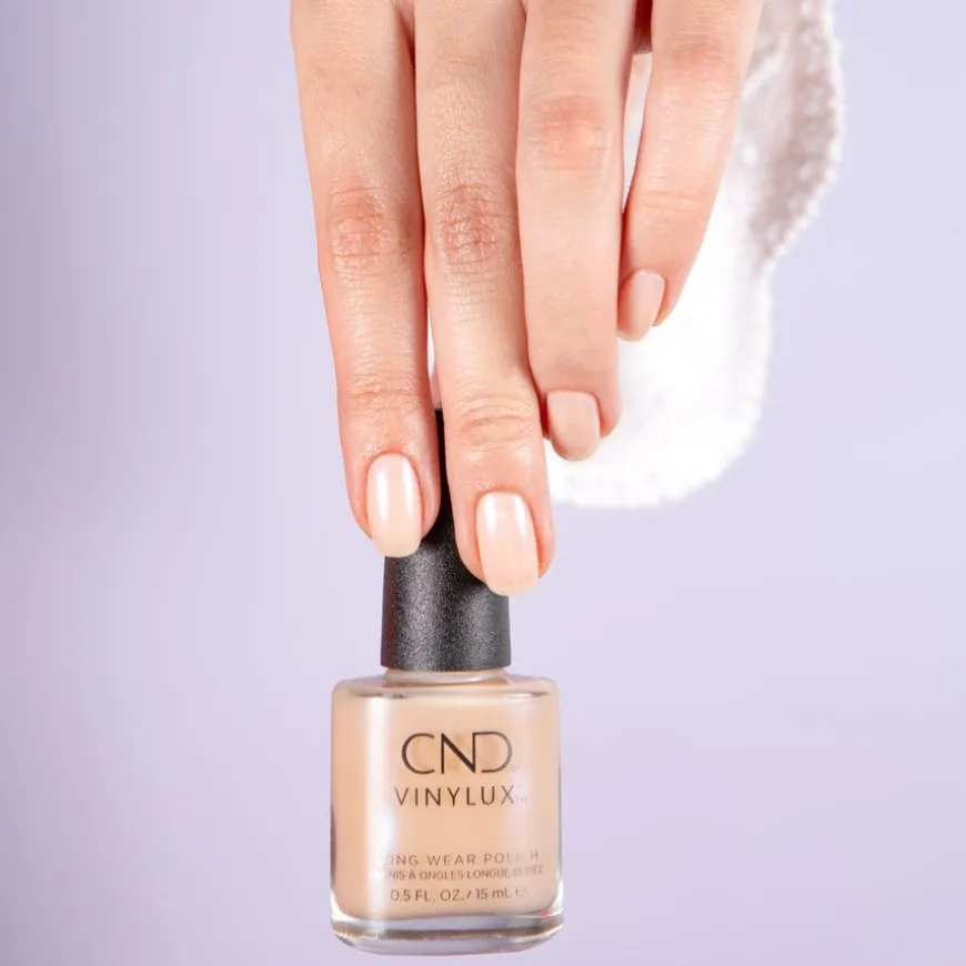 CND VINYLUX er den første neglelakkserien med pleiende egenskaper, beriket med en unik blanding av vitamin E, jojobaolje og keratin som sikrer sunne, sterke og fleksible naturnegler. Den kurvede penselen omfavner neglen for en enkel og jevn påføring.