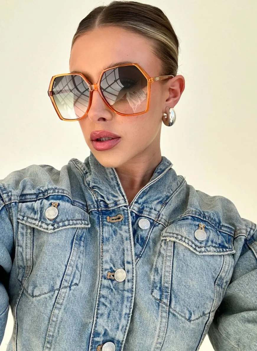 Virgo er et par 70-talls inspirerte oversized solbriller fra Otra Eyewear. Solbrillene kombinerer eleganse og funksjonalitet med sine gyldne rammer og grønne glass. Virgo-modellen gir utmerket UV-beskyttelse og passer til alle ansiktsformer. Disse solbrillene er lette og komfortable, ideelle for daglig bruk. Enten du er på stranden, i byen eller på fottur, er Virgo solbrillene det perfekte tilbehøret for å beskytte øynene dine samtidig som du ser stilfull ut.