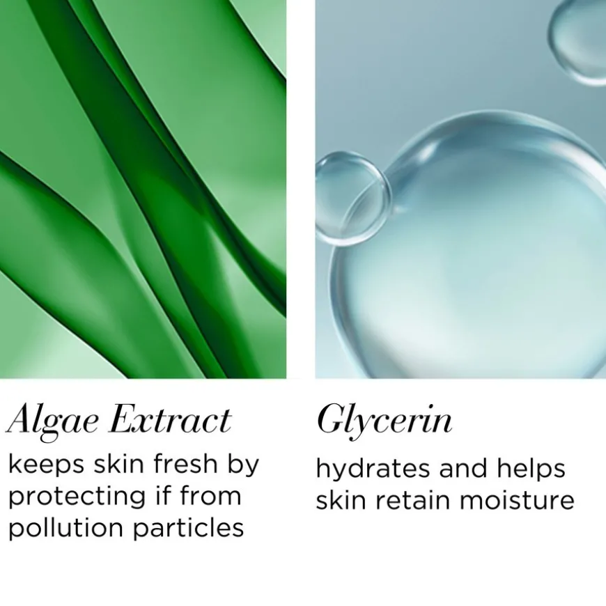 Algeekstrakt bidrar til å beskytte huden mot forurensningspartikler, og glyserin fukter huden og hjelper den med å bevare fuktigheten. For å oppnå de beste resultatene, anbefales det å bruke en god ansiktskrem etterpå, for eksempel Visible Difference Replenishing HydraGel Complex.