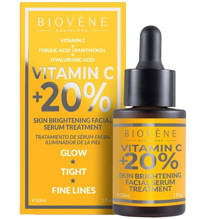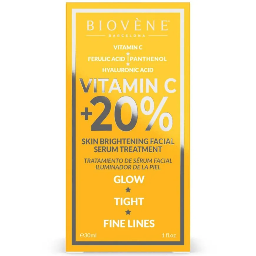 Vitamin C +20% Facial Serum Treatment er et ansiktsserum sombidrar til å redusere synlige tegn på aldring takket være hyaluronsyre, aloe vera, panthenol, ferulinsyre og vitamin C for å øke hudens utstråling for en fastere og lysere hudtone.