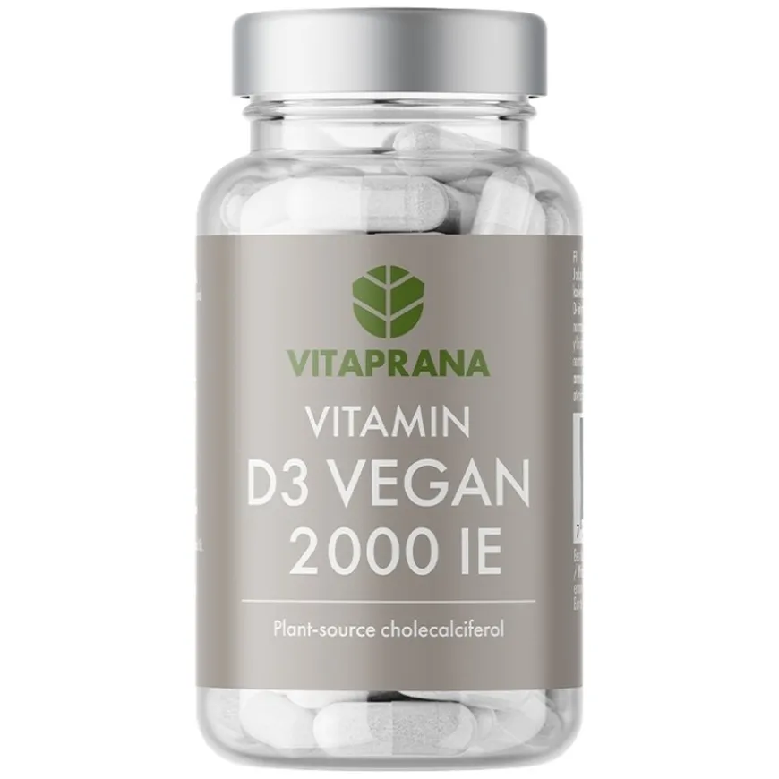 Vitamin D3 Vegan 2000IE er et rent og effektivt tilskudd for daglig vitamin D3-inntak. Vitaprana Vitamin D3 Vegan 2000IE utvinnes fra alger og tilbyr et 100 % vegansk alternativ til tradisjonelle D3-tilskudd laget av lanolin. Hver kapsel gir 50 µg vitamin D3 (2000 IE) og støtter normal funksjon av immunsystemet, benhelse og muskelfunksjon. Kapslene er små, laget av pullulan, en naturlig plantebasert kapseltype, og produktet inneholder ingen unødvendige fyllstoffer. En forpakning rekker til 110 dagers bruk.