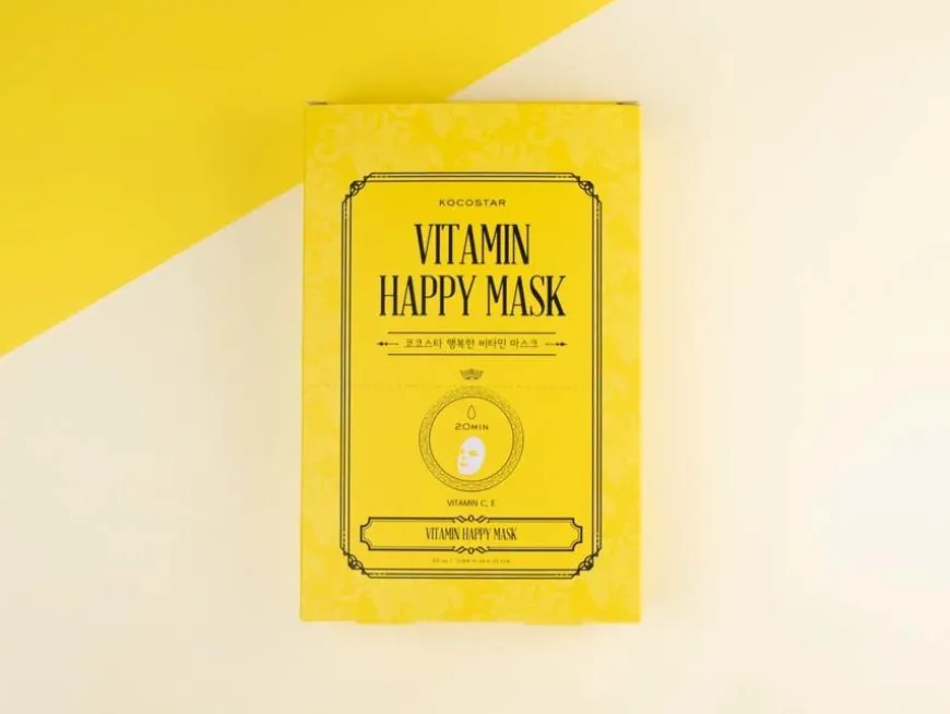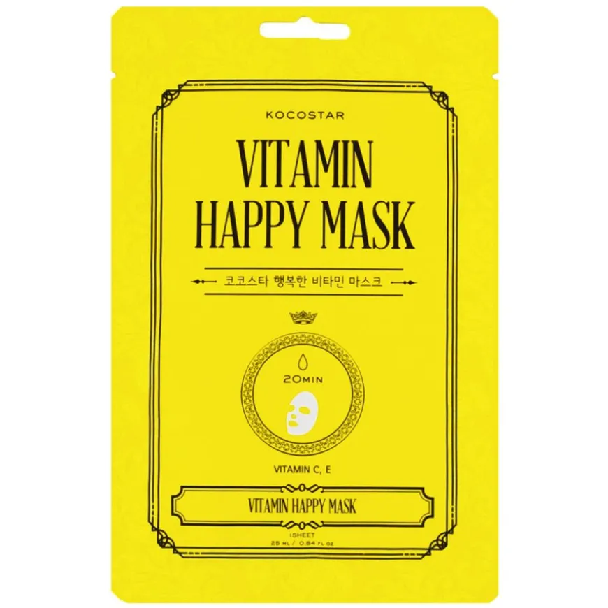Vitamin Happy Mask er en fuktgivende ansiktsmaske som inneholder C- og E-vitamin, som vil beskytte huden din med antioksidanter. Inneholder også hyaluronsyre og niacinamid som lindrer og gir huden et strålende og sunt utseende. Det myke materialet i masken er laget av 80 % lyocell og 20 % lotusfibre, og vil legge seg tett, men behagelig på huden.