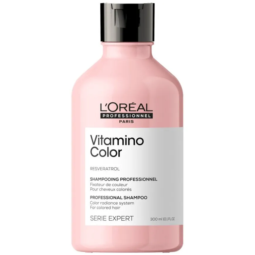 L’Oréal Professionnel Sèrie Expert Vitamino Shampoo er en shampoo til fargebehandlet hår. Beriket med resveratrol, beskytter formelen hårfargen mot å falme i opp til 8 uker og vil samtidig beskytte hårfibre mot skader for et perfekt glansfult resultat*. Urenheter fjernes skånsomt, og håret blir øyeblikkelig mykt og beskyttet fra rot til spiss.