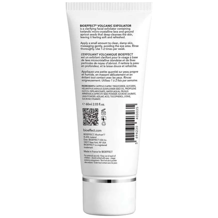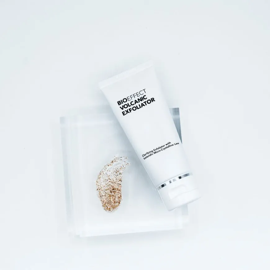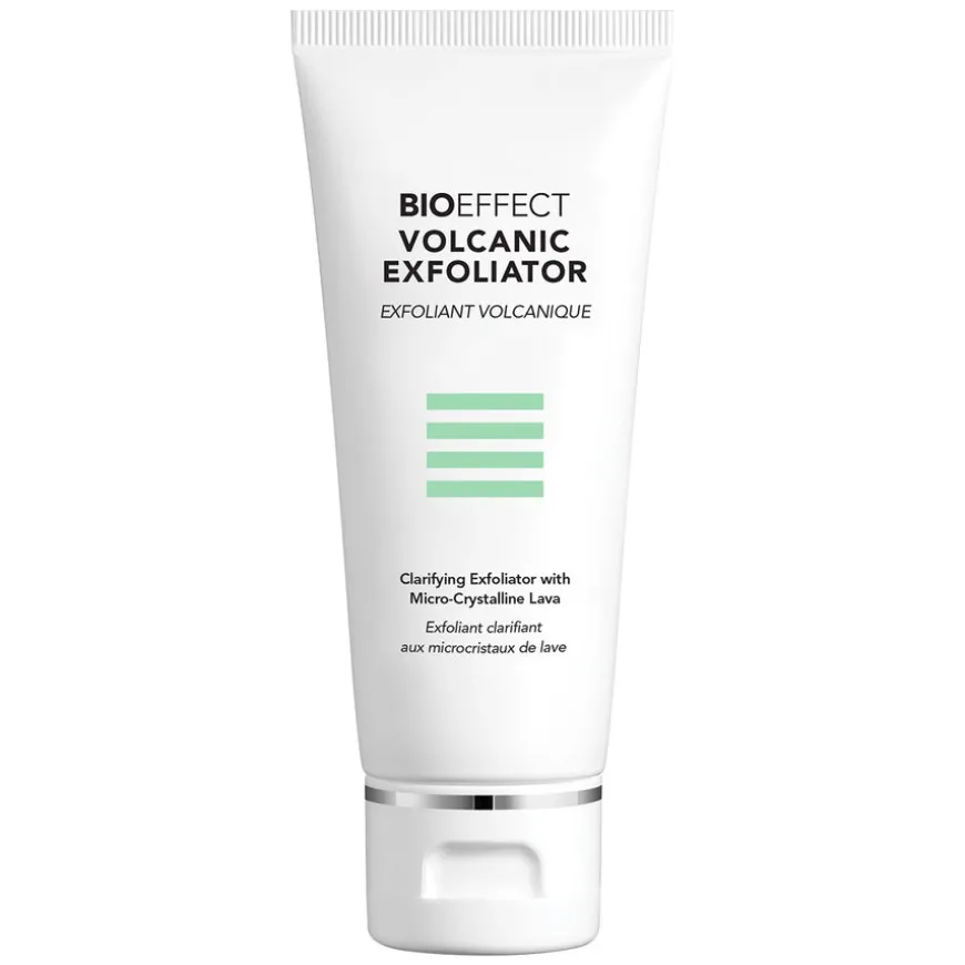 Volcanic Exfoliatorer er en ansiktsskrubb som inneholder islandsk mikrokrystallisk lava som renser i dybden, jevner ut huden og etterlater den myk og fornyet. Eksfoliering med dette produktet gjør det lettere for den cellulære aktivatoren EGF (som finnes i Bioeffect EGF Serum og andre hudpleieprodukter fra Bioeffect ) å trenge inn i huden og utøve sin effekt. De eksfolierende partiklene er passende størrelse for effektiv og skånsomt kunne fjerne tørr hud og døde hudceller fra hudens overflate. Bioeffect Volcanic Exfoliator passer til alle hudtyper.