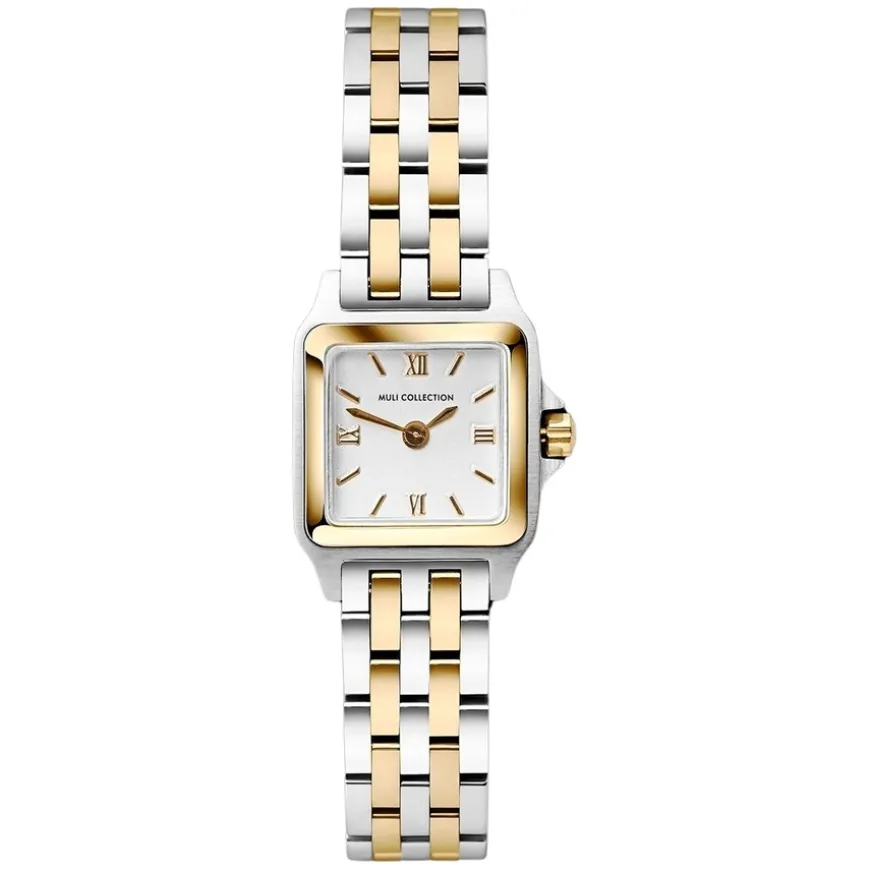 Muli Collection Watch Gold & Silver er en elegant og sofistikert klokke som kombinerer et tidløst vintage-design med moderne kvalitet. Laget av 316L rustfritt stål og utstyrt med ripebestandig safirkrystallglass, er denne klokken både holdbar og vakker. Den har en vanntetthet på 5ATM og drives av den høykvalitets sveitsiske Ronda 1032-bevegelsen for presis tidtaking. Klokkeskiven måler 20mm, mens klokkebåndet måler 17,5cm i lengde og 13mm i bredde, justerbart opptil 20cm og kan tilpasses mindre størrelser. Perfekt alene eller sammen med dine favorittsmykker. Leveres i en elegant eske for oppbevaring og beskyttelse når den ikke er i bruk.