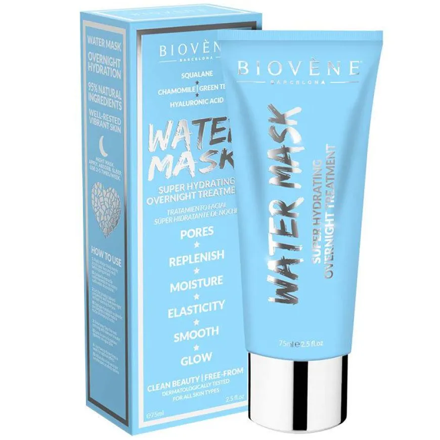 Water Mask Super Hydrating Overnight Treatment er enfuktgivende ansiktsmaske som samtidig fremmer et godt uthvilt utseende. Lad opp mens du sover, da de naturlige ingrediensene absorberes dypt for å lysne, berolige og rense stresset og sliten hud.