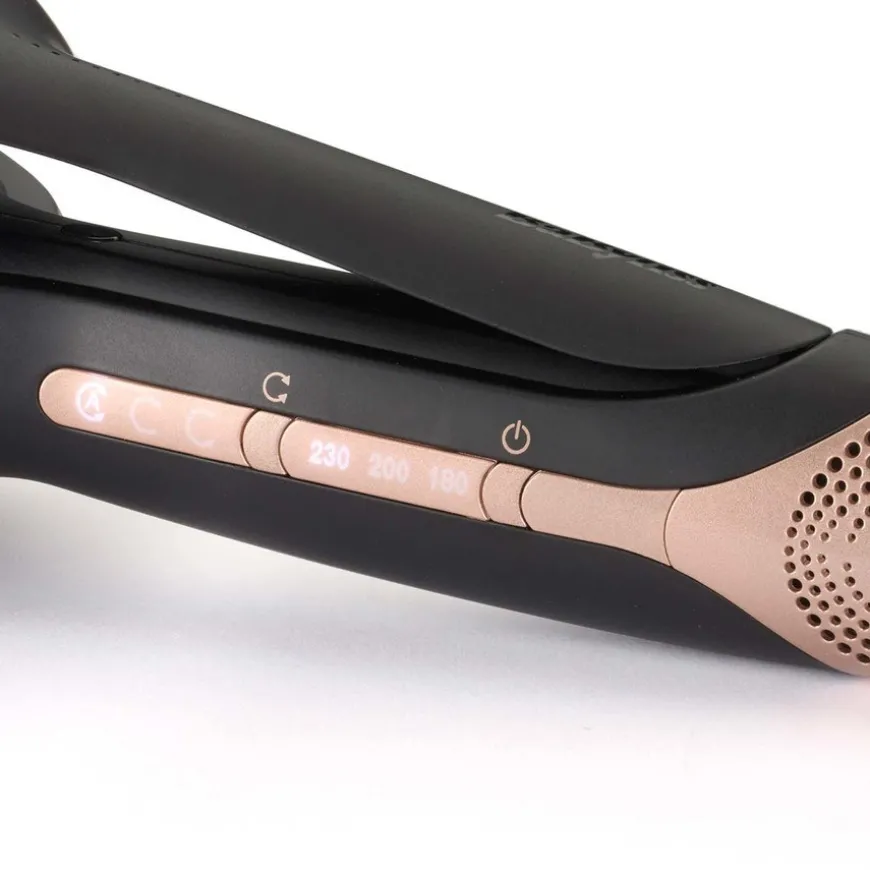 BaByliss Wave Secret Air er et revolusjonerende krølljern som raskt og enkelt skaper varige løse krøller og bølger automatisk. Bare lukk håndtaket, så trekkes håret automatisk inn i det keramiske krøllekammeret hvor det varmes nøyaktig opp slik at du oppnår en perfekt bølge hver eneste gang. Det store kammeret skaper løse krøller uten problemer selv på større hårpartier og lengre hår. Med krøllretningskontroll som gjør det enkelt å skape ulike typer krøller fra de glamorøse til de naturlige.