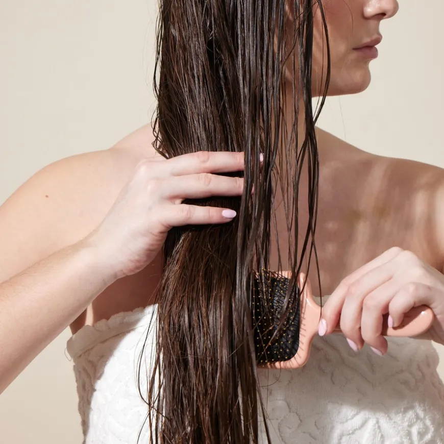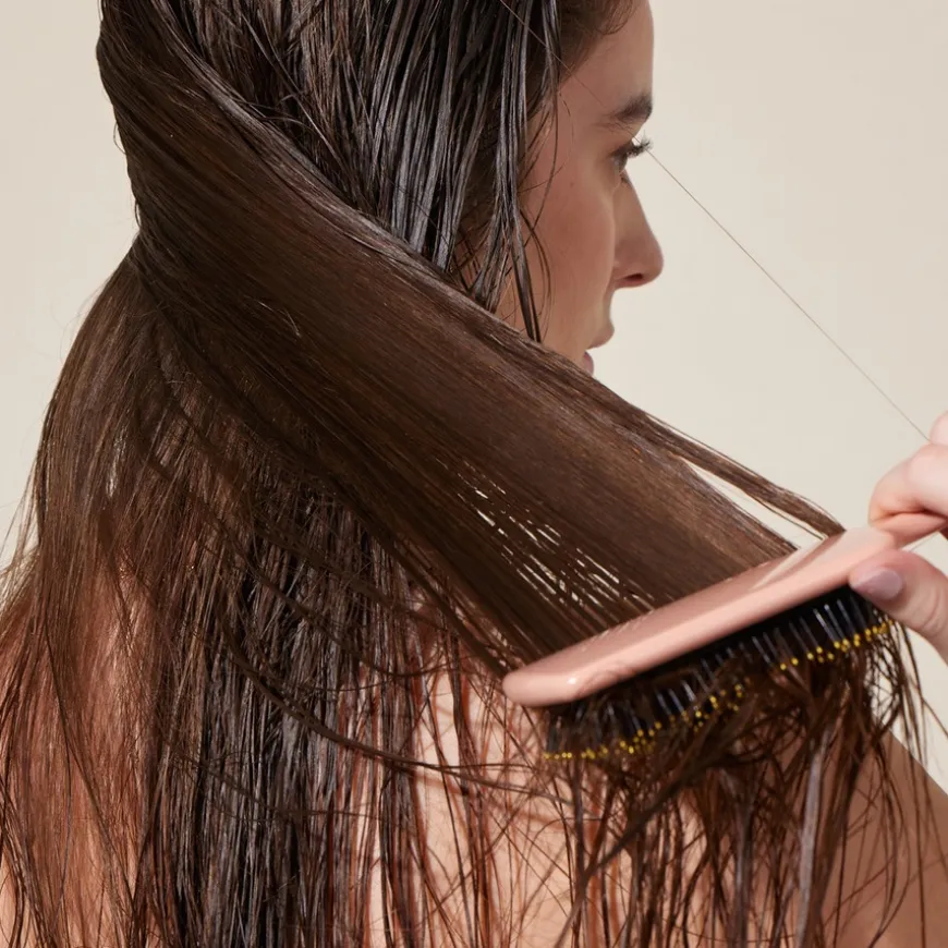 - Børst håret forsiktig fra røttene til tuppene for å løsne opp floker.