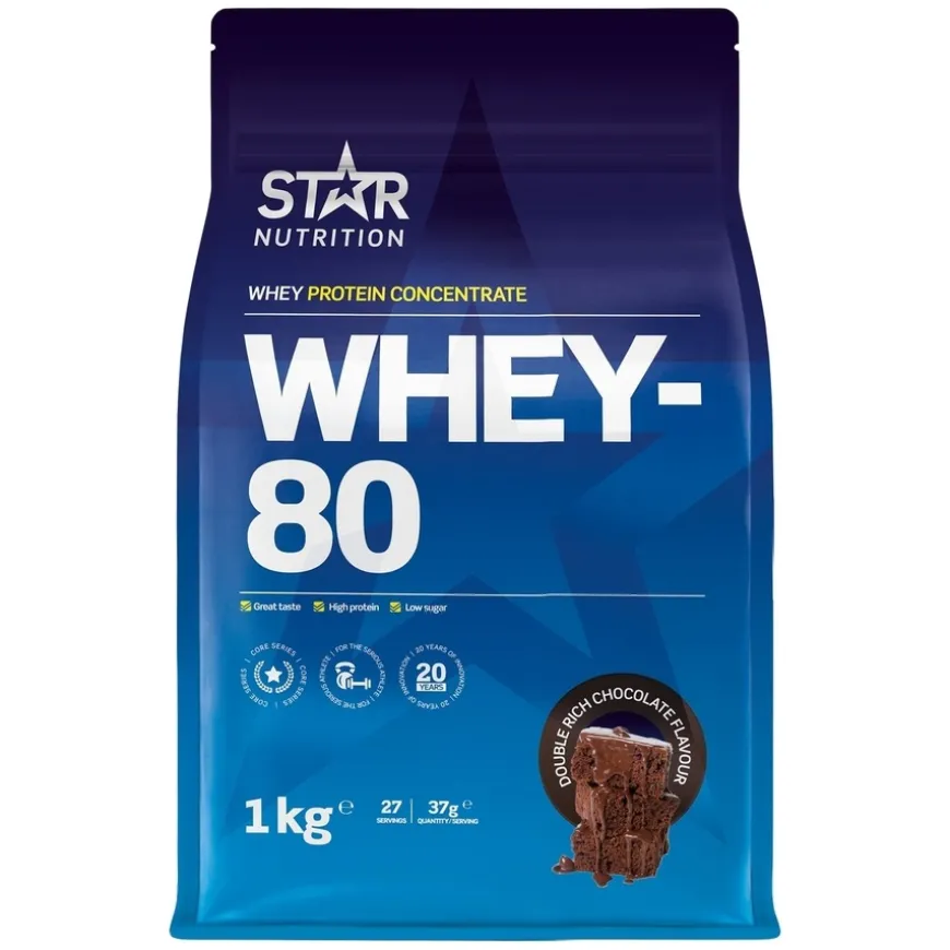 Whey-80 fra Star Nutrition er et komplett proteinpulver som er tilpasset deg som driver med idrett, bygger muskler eller vil forbrenne fett på en mer effektiv måte! Nord-Europas mest solgte protein takket være høy kvalitet, gode smaker og effekt.