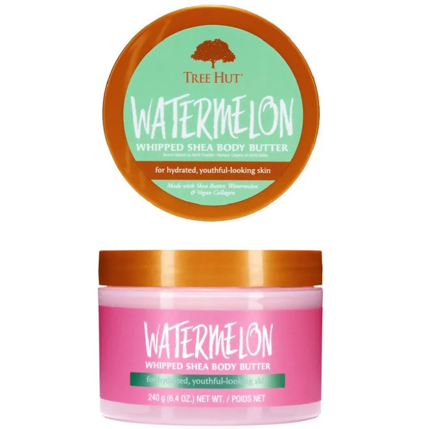 Whipped Shea Body Butter Watermelon er en dypt fuktighetsgivende og næringsrik hudlotion som mykgjør og forbedrer hudens elastisitet. Kremen har en luksuriøs og lett formel som raskt absorberes av huden. Inneholder blant annet vannmelon som fukter og skånsomt eksfolierer huden, vegansk kollagen med anti-aging-egenskaper som bidrar til en glattere og fastere hud, samt sheasmør som fukter, gir næring, mykgjør og forbedrer hudens elastisitet. Har en frisk duft av vannmelon, sitronskall, grønt eple og ananas, og er vegansk.