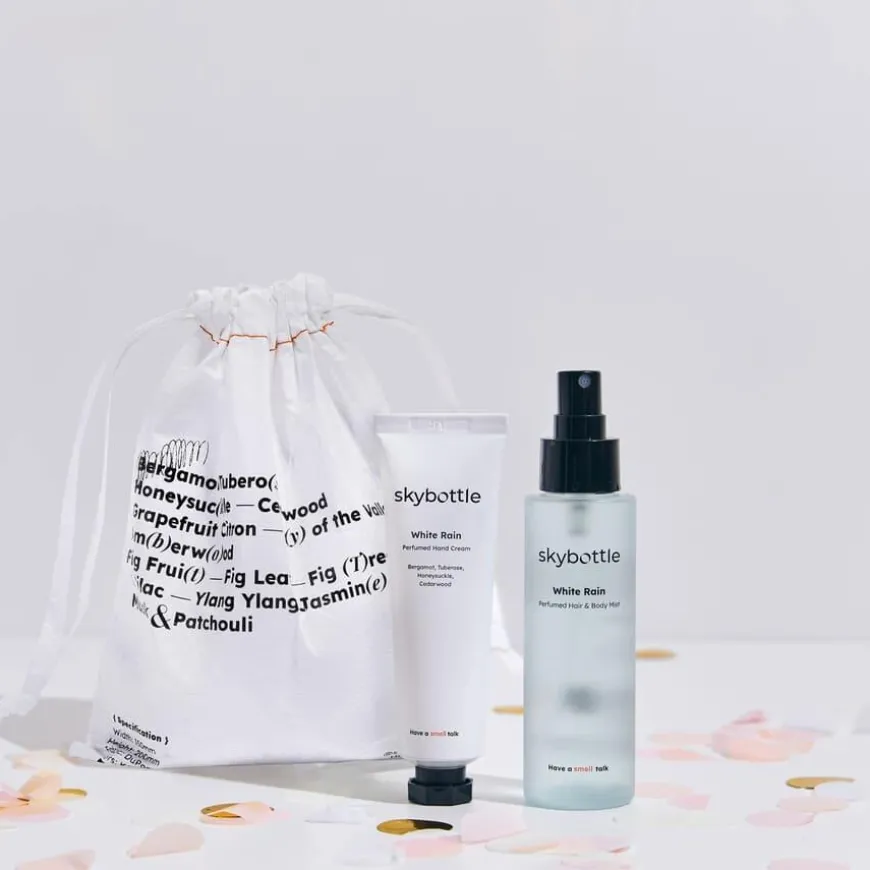 White Rain Perfumed Hair & Body Mist er en multifunksjonell spray med Skybottles signaturduft – ren, floral og elegant. Duften minner om en blomsterhage tidlig om morgenen, fylt med duggfriske tuberoser og kaprifol. Denne sprayen er ideell for deg som elsker florale dufter med et friskt preg, og som ønsker både et pleiende og sanselig produkt. Den gir fuktighet og pleie til hud og hår, takket være snølotus-ekstrakt og bomullsfrøekstrakt, samt beroligende soyabønneekstrakt. Passer perfekt etter dusj eller når du vil friske opp i løpet av dagen. Produktet er EWG green grade, cruelty free og glutenfri.