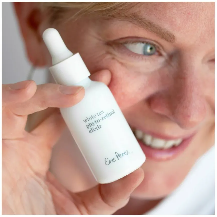 White Tea Phyto-Retinol Elixir er et vegansk serum som strammer opp og styrker huden uten å tørke ut eller irritere. Den lettvektsformelen absorberes raskt og inneholder en høy konsentrasjon av aktive ingredienser, inkludert fenolrik hvit te. Fenolene støtter produksjonen av kollagen og elastin, noe som får huden til å se glattere og jevnere ut. Passer for alle hudtyper, spesielt aldrende eller uren hud.