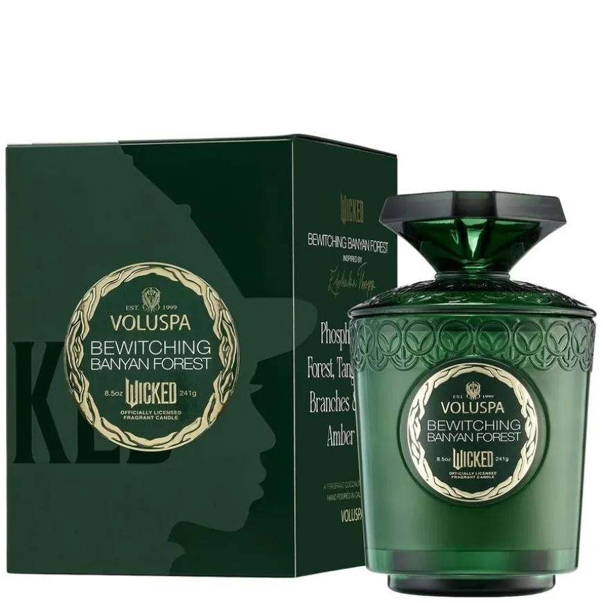 Bewitching Banyan Forest Boxed Candle er et luksuriøst duftlys fra Voluspas Wicked-inspirerte kolleksjon, skapt for å gi hjemmet ditt en varm og fortryllende atmosfære. Duften består av dype noter fra glødende rav, fosforescerende skog og jordaktige banyantregrener – en krydret og treaktig sammensetning som omslutter rommet med ro og mystikk.