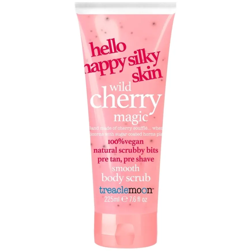 Få silkemyk og jevn hud med skånsomme og velduftende kroppsskrubber. Treaclemoon Wild Cherry Magic Body Scrub er en godbit på flaske som ser og føles bra ut. Skånsom på selv den mest følsomme hud. Ekte velvære i dusjen eller badekaret. Vegansk.