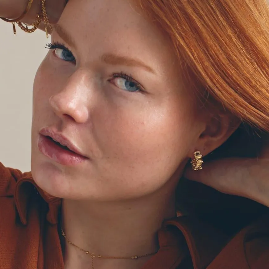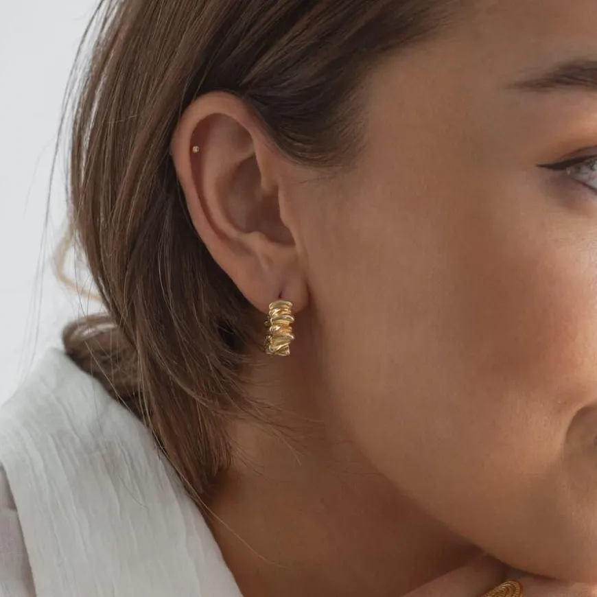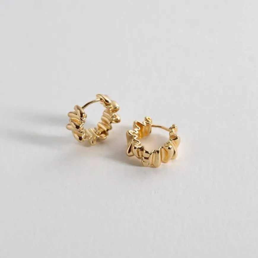 Wild Chunky Texture Hoop Earrings er creol-øredobber med en leken, bølgete overflate som gir en moderne og kul vri på det klassiske hoop-designet. Øredobbene er laget med messingbase og belagt med 18 karat gull for en varm, glansfull finish. Med en innvendig diameter på 11,5 mm er de kompakte, men gir et kraftfullt uttrykk. De lukkes enkelt med et klikk, og er fri for nikkel, kadmium og bly – noe som gjør dem trygge for sensitiv hud.