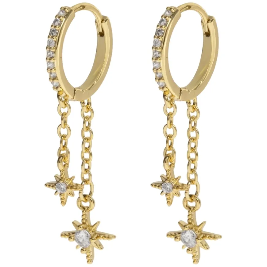 Winny Crystal Stars on Chain Hoop Earrings er et par statement-øredobber designet for å tilføre en luksuriøs touch til antrekket ditt. Med glitrende stjerneanheng som henger fra kjeder, er disse øredobbene ideelle for å styles med din fineste kjole. Perfekt for ekstra spesielle anledninger når du ønsker å føle deg selvsikker og litt ekstra bortskjemt.
