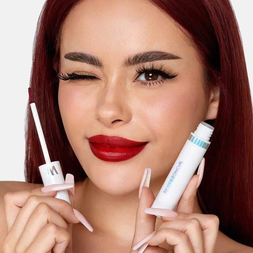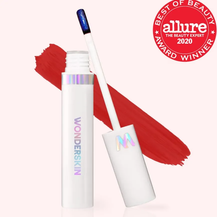 Wonderskin Lip Stain & Go kombinerer maksimal farge fra leppestift med langvarig holdbarhet fra en leppefarge. Den holder leppene myke og fuktige i flere timer. Produktene er ansvarlig utviklet med trygge ingredienser, og hver laboratorieutviklet nyanse reagerer med din unike kjemi for å skape den perfekte fargen for deg. Resultatet føles lett – som om du ikke har noe ekstra på leppene.