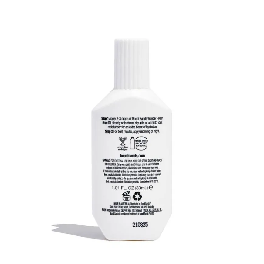 - Påfør 2–3 dråper av Bondi Sands Wonder Potion Hero Oil direkte på ren og tørr hud, eller bland den inn i fuktighetskremen din for ekstra fuktighet.