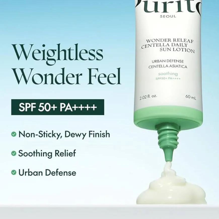 Wonder Releaf Centella Daily Sun Lotion er formulert med både kjemiske og fysiske filtre for å gi eksepsjonelt høy, bredspektret UVA/UVB-beskyttelse. Den duftfrie og fuktighetsgivende formelen smelter umiddelbart på huden under påføring, og gir en enkel og jevn spredning. Den lette teksturen gir en gjennomsiktig finish uten hvitskjær. Denne solkremen er spesielt designet for enkel påføring på nytt og effektiv ytelse både under makeup og alene.