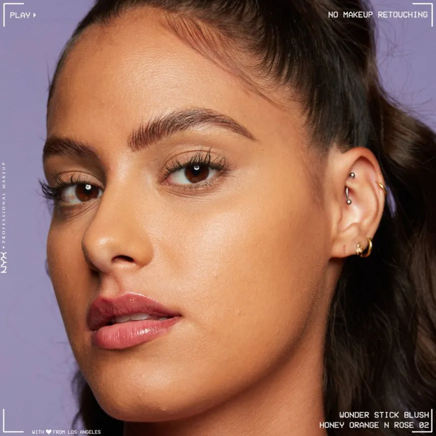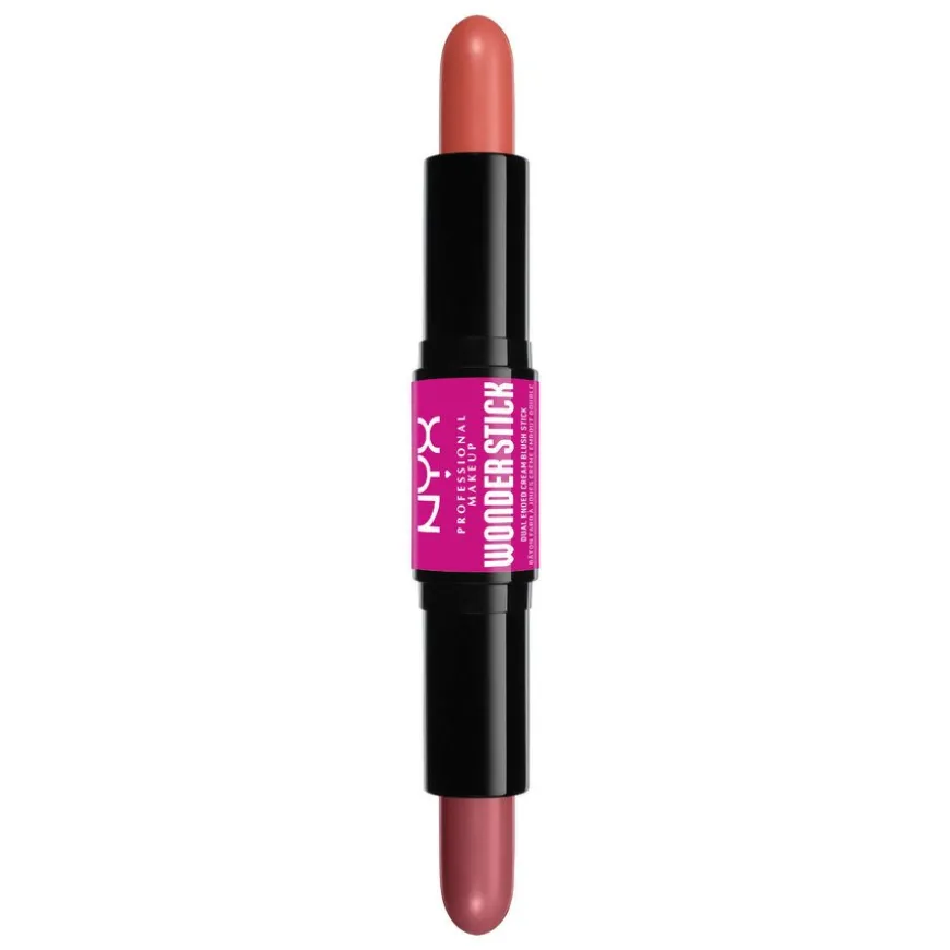 NYX Professional Makeup Wonder Stick Dual-Ended Cream Blush Stick er en rouge-stick med farge i begge ender. Produktet gir farge og definisjon og er lett å tone ut i to enkle steg. Den kremete og superpigmenterte duo-blushen har en vegansk formel som legger seg vakkert på huden din. Den er behagelig og lett å tone ut. Beriket med hyaluronsyre for å tilføre huden fuktighet og forbedre huden. Form, lysne og ton ut med koordinerte farger som er utviklet for å hjelpe deg med å definere ansiktet! Påfør først den mørke fargen der du vanligvis legger contouring for å forme ansiktet. Legg deretter den lyse fargen øverst på kinnbena for å gi frisk glød. Ton ut opp mot tinningene for å duse ut fargen og gi jevn og frisk farge. Hvis du vil ha en mer naturlig look kan du nøye deg med å bruke bare en av fargene. Liker du glam eller naturlig look? Din look er i dine hender! Du kan bruke produktet samen med Wonder Stick for en enda mer definert look eller med Wonder Pencil hvis du ønsker er mer nøyaktig påføring.