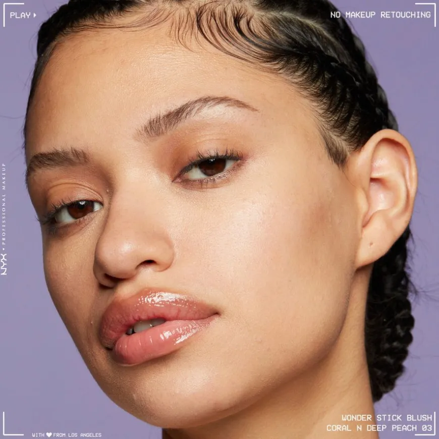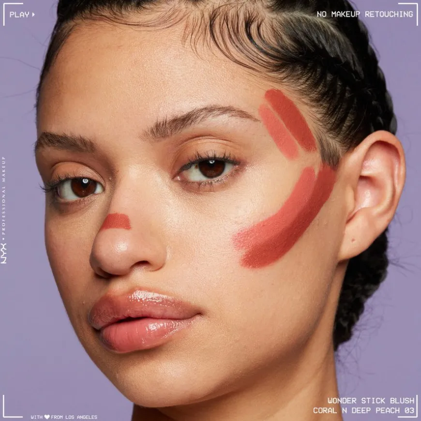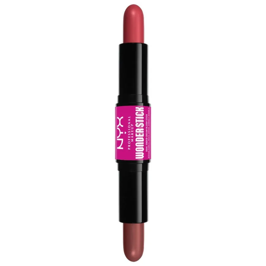 NYX Professional Makeup Wonder Stick Dual-Ended Cream Blush Stick er en rouge-stick med farge i begge ender. Produktet gir farge og definisjon og er lett å tone ut i to enkle steg. Den kremete og superpigmenterte duo-blushen har en vegansk formel som legger seg vakkert på huden din. Den er behagelig og lett å tone ut. Beriket med hyaluronsyre for å tilføre huden fuktighet og forbedre huden. Form, lysne og ton ut med koordinerte farger som er utviklet for å hjelpe deg med å definere ansiktet! Påfør først den mørke fargen der du vanligvis legger contouring for å forme ansiktet. Legg deretter den lyse fargen øverst på kinnbena for å gi frisk glød. Ton ut opp mot tinningene for å duse ut fargen og gi jevn og frisk farge. Hvis du vil ha en mer naturlig look kan du nøye deg med å bruke bare en av fargene. Liker du glam eller naturlig look? Din look er i dine hender! Du kan bruke produktet samen med Wonder Stick for en enda mer definert look eller med Wonder Pencil hvis du ønsker er mer nøyaktig påføring.