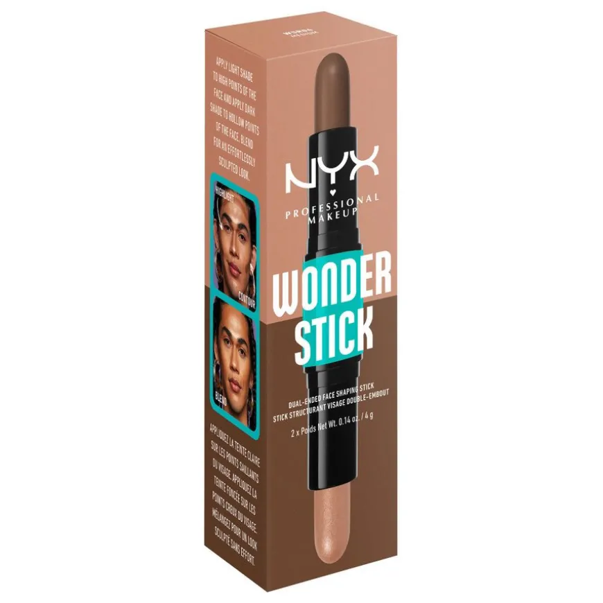 Wonder Stick Dual-Ended Face Shaping Stick er en fantastisk duo fra NYX Professional Makeup for å forme og definere ansiktskonturene. Fan-favoritten Wonder Stick Dual-Ended Face Shaping Stick fra NYX Professional Makeup er tilbake – og den er bedre enn noensinne! Den lyse enden gir ansiktet en solkysset glød, mens den mørke enden brukes for å fremheve og og forme ansiktskonturene. Form, lysne og ton ut med de superpigmenterte fargekombinasjonen! Start med den mørkeste enden for å forme og definere ansiktet, påfør deretter den lyse fargen for å lysne og fremheve de høyeste punktene i ansiktet. Dus godt ut for en fantastisk finish. Den veganske formelen* er ultrakremet, pigmentert, enkel å tone ut og gir en super finish.Tilpass looken med påbyggbare nyanser. En contouring stick utenom det vanlige! Wonderstick er enkel å bruke og gir deg en mer nøyaktig highlighting og contouring. Fin å bruke sammen med Wonder Stick Blush, som gir et ekstra hint med farge eller Wonder Pencil for mer nøyaktig påføring.