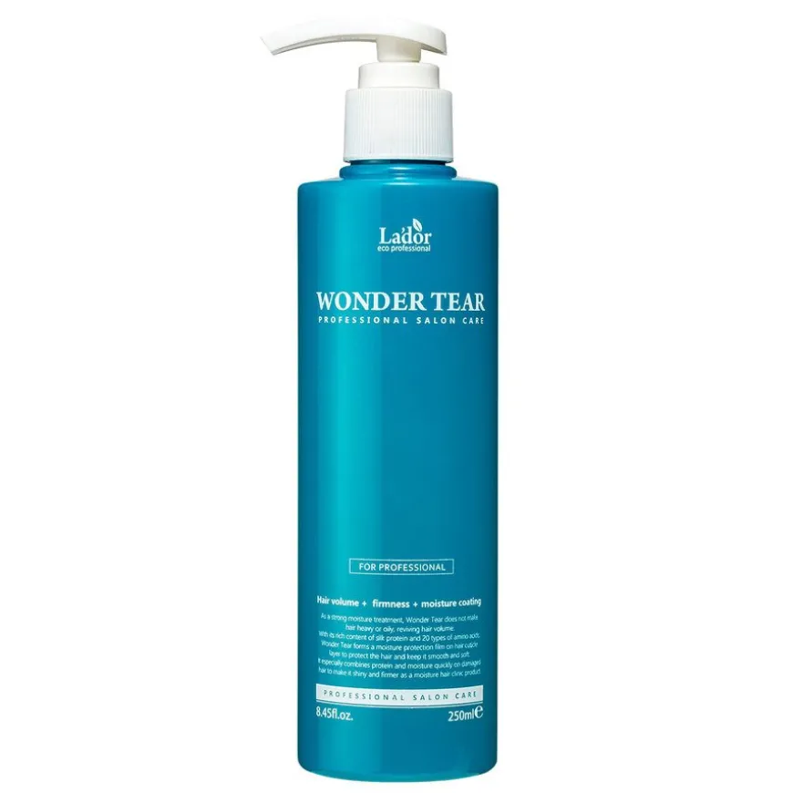 Wonder Tear er en reparerende hårkur for skadet hår. Fungerer som en fuktighetskrem og gir deg mykt og glansfullt hår. Bidrar til å redusere krus. Inneholder 20 forskjellige aminosyrer og protein fra silke som skaper en beskyttende barriere og styrker håret uten å tynge det ned. Brukes med fordel som beskyttelse før kjemiske behandlinger som permanent, farging eller bleking. For best resultat, bruk etter La’dor Wonder Balm.