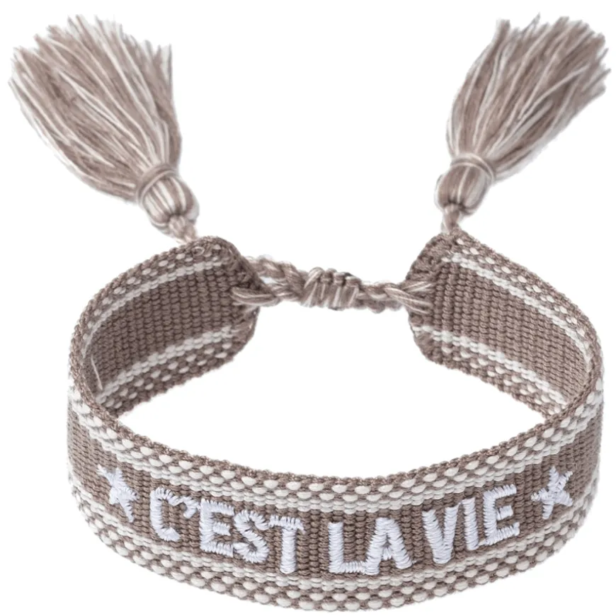 Woven Friendship Bracelet er et vevet armbånd laget av bomull dekorert med teksten «C’est La Vie».