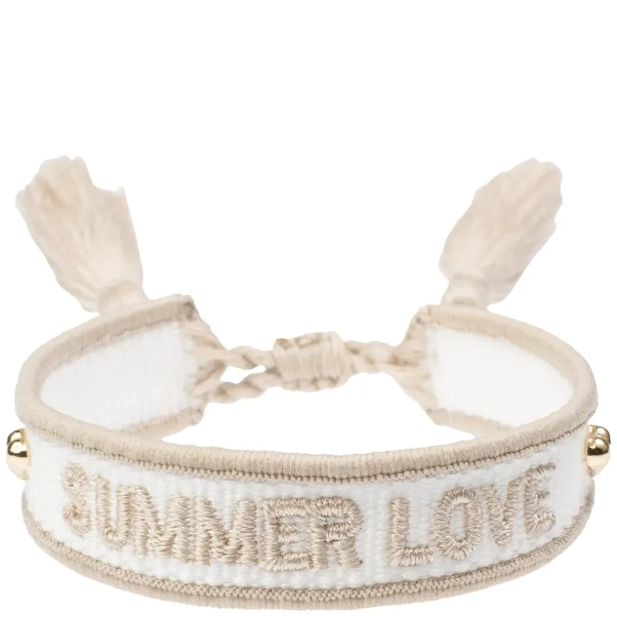 Woven Friendship Bracelet Thin «Summer Love» er et smalt, vevd vennskapsarmbånd dekorert med metallperler. Det har en justerbar lengde for en komfortabel passform og passer til enhver anledning. Perfekt som en personlig detalj eller en meningsfull gave.