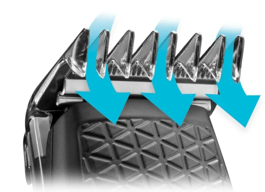 Remington X5 Power-X Series Hair Clipper er en hårklipper med opptil 75 minutter trådløs brukstid og kommer med fire justerbare kammer som lar deg velge mellom 72 forskjellige lengder. Det selvslipende bladet i japansk rustfritt stål gir deg et rent og skarpt klipperesultat og den kraftige motor gir deg 3x forbedret klippeytelse sammenlignet med en standard Remington hårklipper og med turbo boost-funksjonen kan du øke kraften om nødvendig.