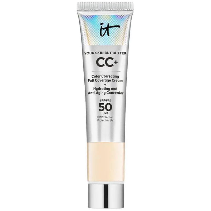 It Cosmetics Your Skin But Better CC+ Cream SPF50+ er en stor favoritt og bestselger! Den fungerer som et fuktgivende serum, en primer og dagkrem i ett og samme produkt, med skånsomme ingredienser og egenskaper. Den blir raskt et must i makeup-rutinen din når du ønsker å skape en ensartet og naturlig look, samtidig som den reduserer synligheten av porer, fine linjer og fargeforskjeller i huden. IT Cosmetics CC+ Cream er utviklet i samarbeid med hudpleieeksperter og dermatologer, noe som sikrer at produktet inneholder fordelaktige og skånsomme ingredienser for huden din.