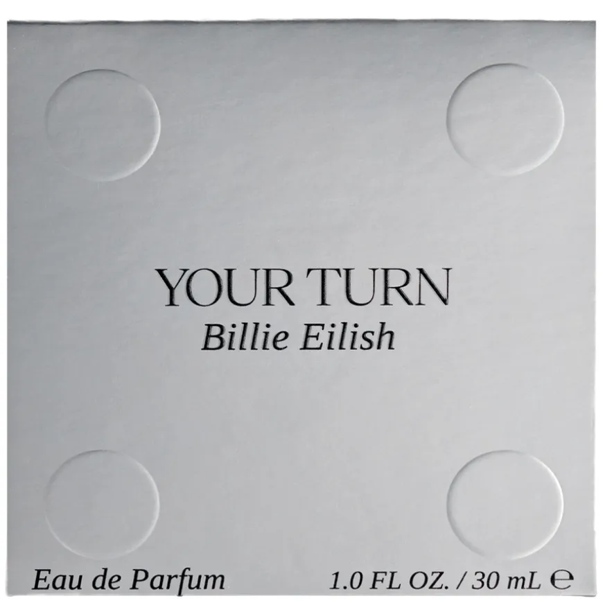 Billie Eilish Your Turn er en dristig og fengslende duft fra Billie Eilish, inspirert av kontrasten mellom hardt og mykt. Den åpner med friske noter av bergamott, kardemomme og ingefær, som går over i et sensuelt hjerte av ferskenskall, sjasmin og kokosvann. En dyp base av sandeltre, musk og bærekraftig høstet Sylvamber™ gir en varm finish som sitter lenge og etterlater et varig inntrykk.