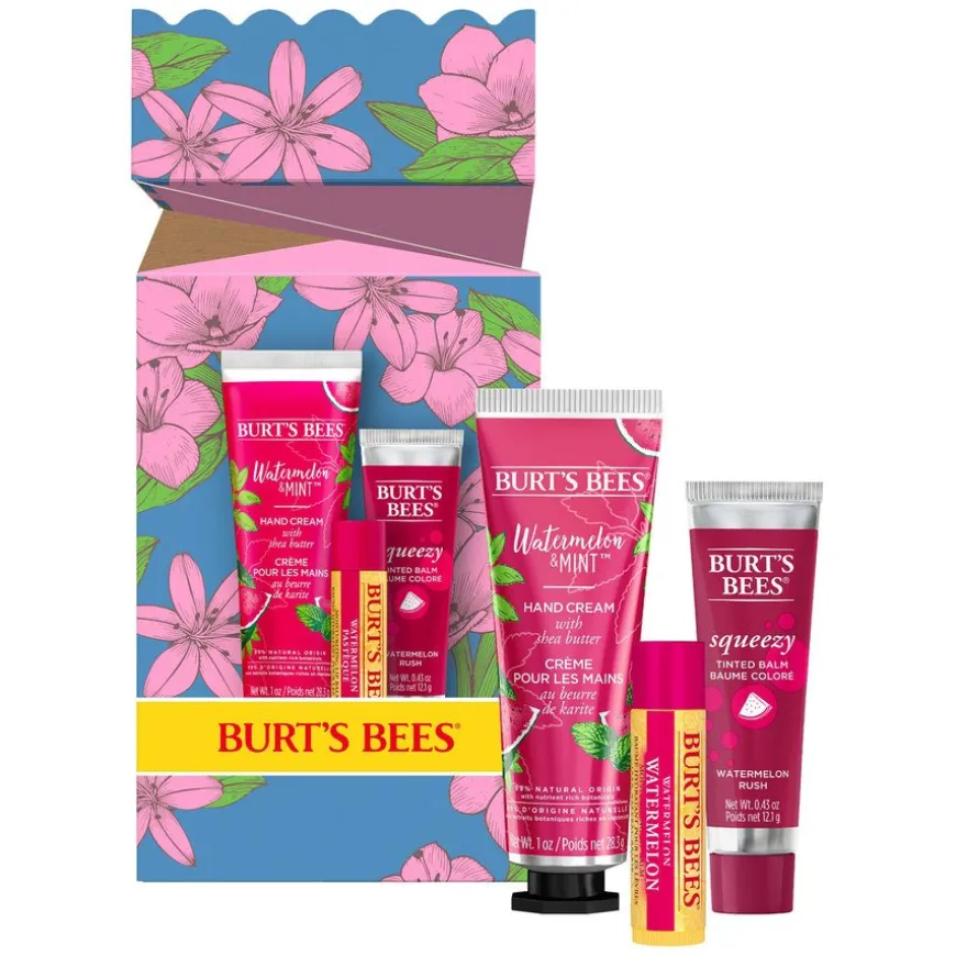 You’re one In A Melon Lip Gift Set er et hånd- og leppepleie gavesett som inkluderer tre naturlig fuktighetsgivende hudpleieprodukter med saftig vannmelonsmak.